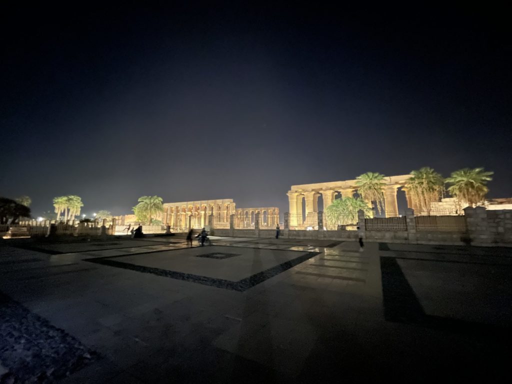 平日の夜にもかかわらず、広場にはたくさんの子供がいてピクニック?をしていました。とても活気がありました。すぐ横にはルクソール神殿があり、なんとも不思議な光景でした🙄