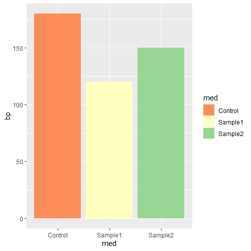 p <- ggplot(data = df, aes(x = med, y = bp, fill = med)) +