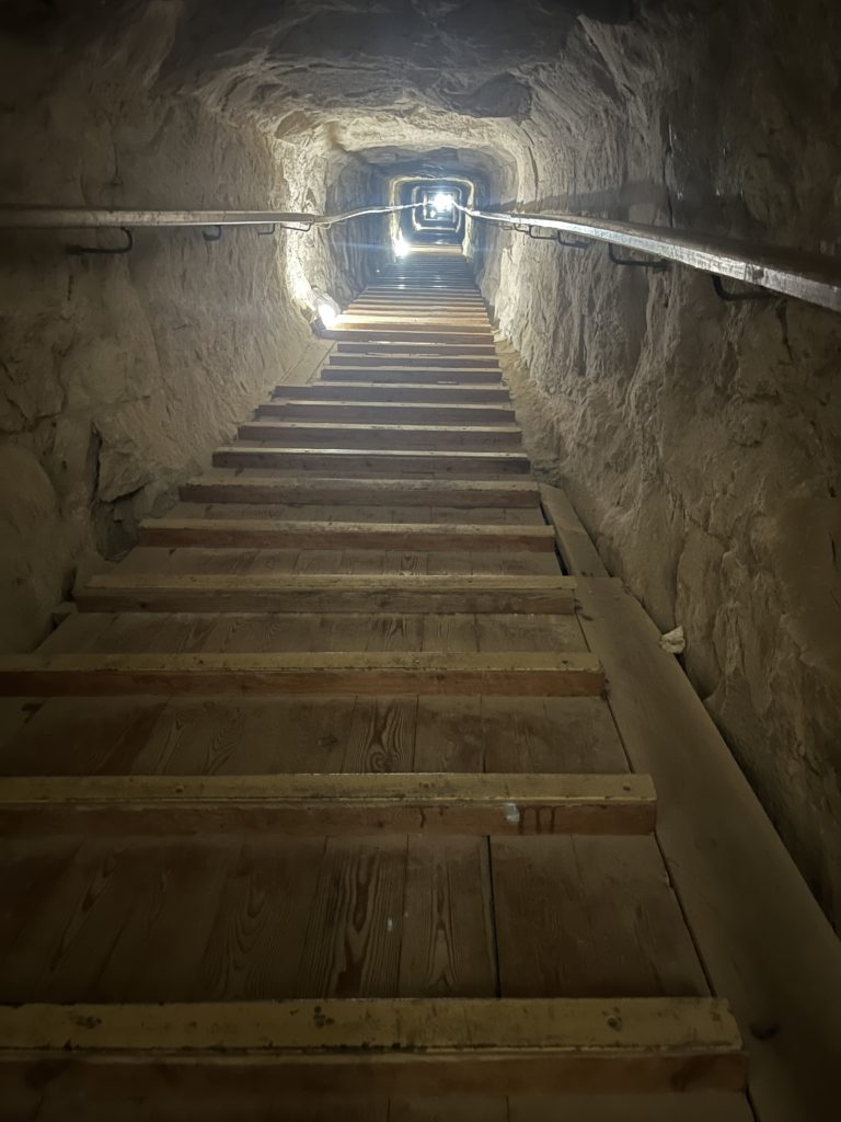 狭い上に傾斜も急なので後ろ向きに降るようにとのこと。ガイドさんからくれぐれも無理しないようにと念押しされた通り、ギザのピラミッドとは比べものにならないほど狭く長くつらい道のりでした😅私は途中で断念しましたが、旦那はヒイヒイ言いながらも登りきってました👏この後数日ひどい筋肉痛でした…。