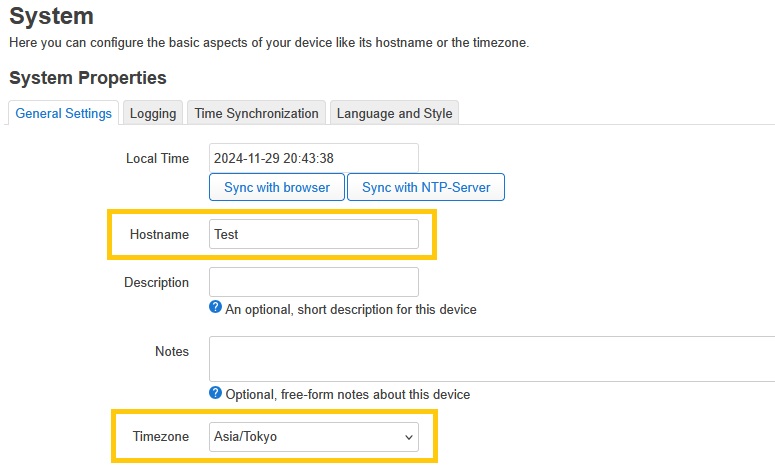 また「System」→「System」と進み,必要に応じてデバイス名や時間帯を日本へ変更しておくとよいでしょう.