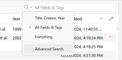 まずは右上にある検索欄の下矢印をクリックして”Advanced Search”を選択します.