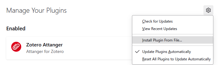 - Attangerの最新バージョンをダウンロードします(zotero-attanger.xpi).