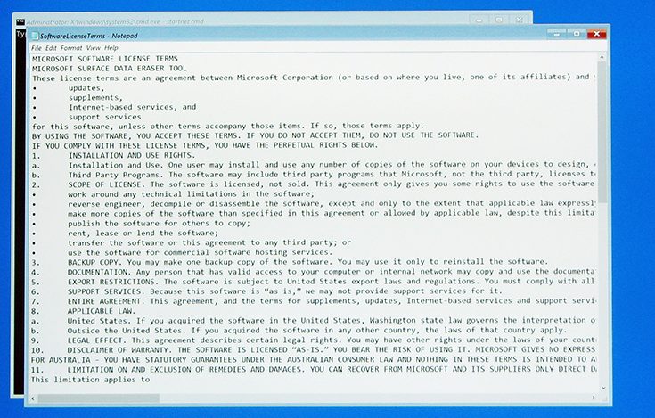 wipe-outなど多くのソフトウェアによる完全消去がありますが,Surfaceには専用のプログラムがあるようなのでそれを利用してみました.