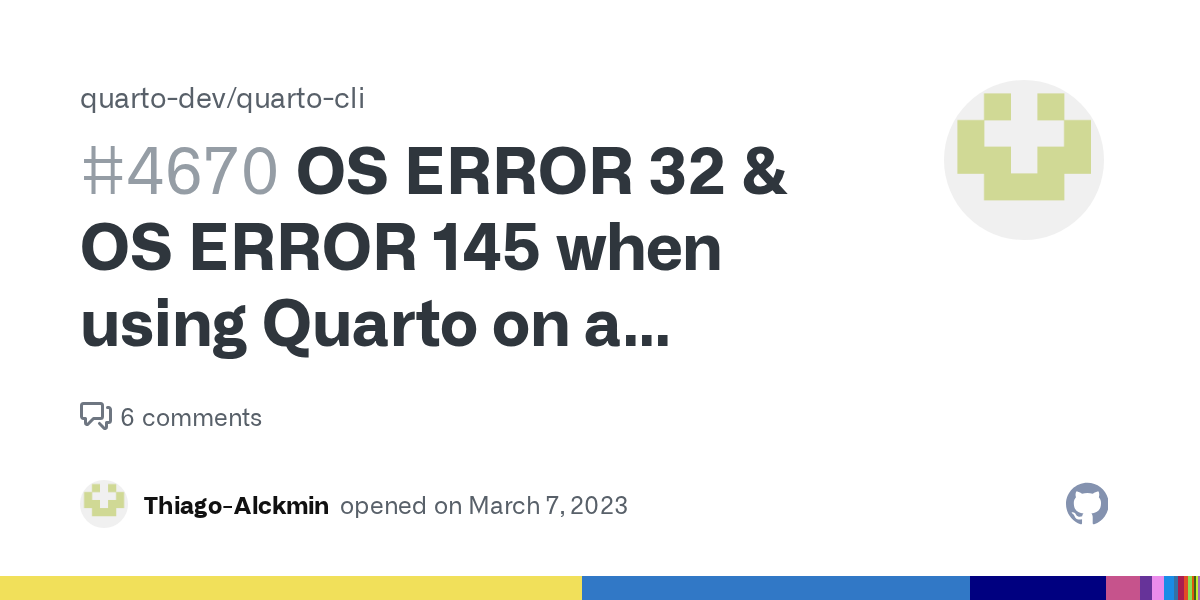 OS ERROR 32 & OS ERROR 145 when using Quarto on a Dropbox directory. SOLUTION: Use local folder. ?? Issue #4670 ?? quarto-dev/quarto-cli